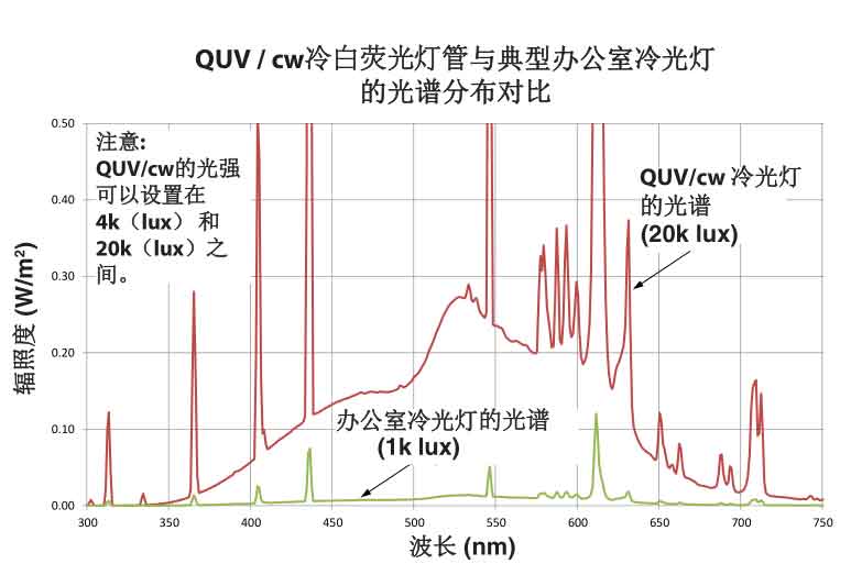 帶有冷白熒光燈管的QUV/cw 優(yōu)勢(shì)在哪里?