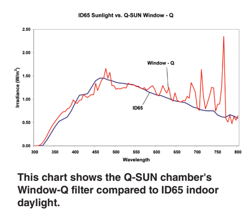 ICH指南沒有規(guī)定光譜是否應(yīng)與D65或ID65匹配。通常,ID65光譜是用Q-SUN中的WINDOUS-Q 濾光片模擬的,因?yàn)樗M了進(jìn)入建筑物內(nèi)部的陽光。然而,日光濾光片適用于室外應(yīng)用,如染發(fā)劑和防曬霜。