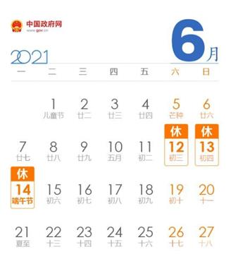 2021年翁開爾集團(tuán)端午放假通知:據(jù)國務(wù)院辦公廳通知精神,結(jié)合公司實(shí)際情況,現(xiàn)將2021年端午節(jié)放假安排通知如下:  6月12日(星期六)至6月14日(星期一)放假,共3天。