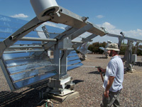| 自日出至日落,Q-TRAC 系統(tǒng)將自動(dòng)跟蹤太陽(yáng),而且通過(guò)雙軸軌道設(shè)計(jì),系統(tǒng)可朝任何方向移動(dòng),便于每季度和每天的方向調(diào)節(jié)。 | Q-Lab 擁有大量 Q-TRAC 自然太陽(yáng)光聚能裝置。檢修整個(gè)場(chǎng)地的裝置需要乘坐高爾夫車。 | 保持鏡面清潔是維持 Q-TRAC 系統(tǒng)性能的關(guān)鍵;必須定期清潔。 |