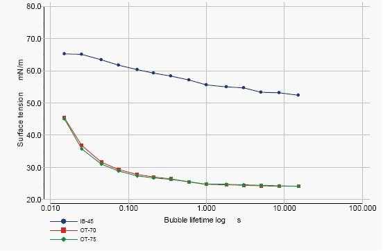 使用德國SITA 動態(tài)表面張力儀,直接得出表面活性劑的動態(tài)表面張力數(shù)據(jù):
