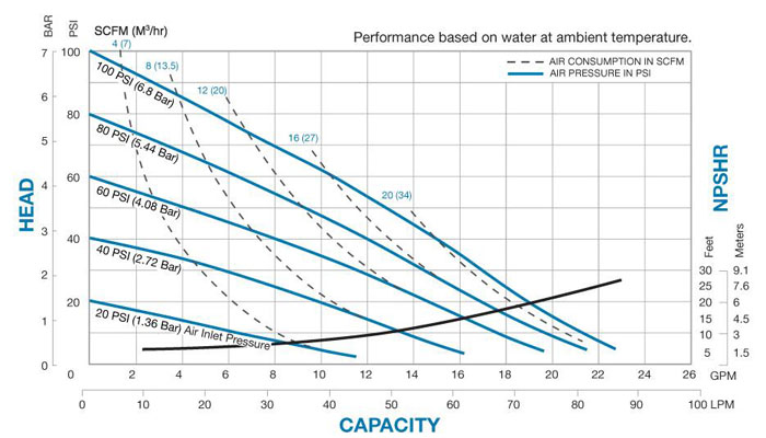 S10非金屬氣動(dòng)隔膜泵的性能曲線圖: