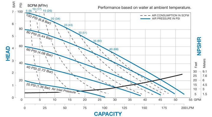 進(jìn)口氣動(dòng)隔膜泵性能曲線圖: