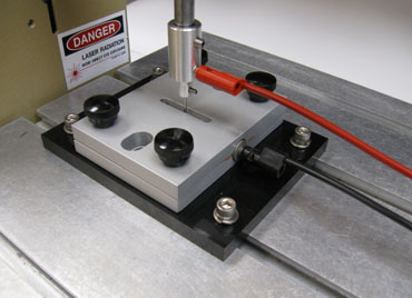 在前板的切口針使其與試樣接觸。在壓力和磨料作用的控制條件下,針在芯軸的中心線頂點(diǎn)上來(lái)回針式的移動(dòng)。當(dāng)突破發(fā)生時(shí),測(cè)試自動(dòng)停止。