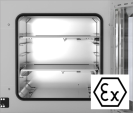 設(shè)備設(shè)計(jì)符合 ATEX 標(biāo)準(zhǔn),在真空度 < 100 mbar時(shí)啟動(dòng)加熱壓力控制裝置。設(shè)備滿足 ATEX 類別EX II 2/3/- G IIB T3 Gb/Gc/- X 的要求。