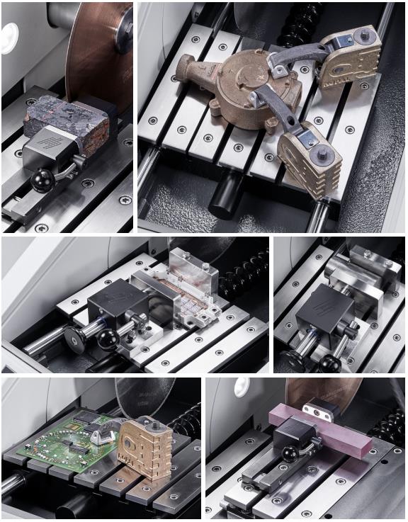 Secotom 的切割輪可在 40 mm (1.6") 的范圍內(nèi)調(diào)整高度,從而可以使用多種夾具,也可以使用燕尾槽試樣夾具座。此外,它可以使用各種尺寸的切割輪,因此易于補償輪磨損。