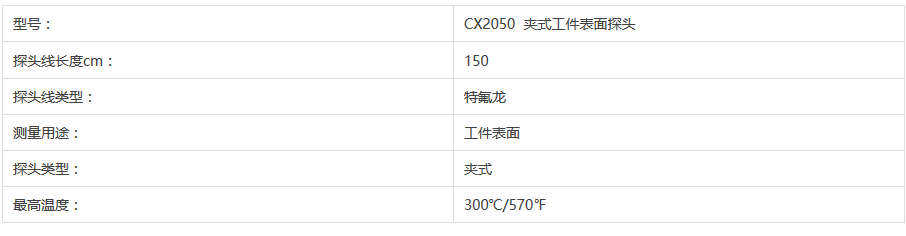 CX2050爐溫探頭是一種夾式工件表面探頭,測(cè)量最高溫度:300℃/570℉。